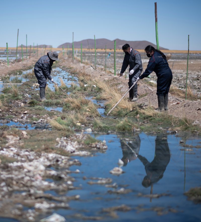 Odaliz Mamani, the youngest member of our community, plays a crucial role in our efforts by managing our social media presence. Through various platforms, she shares our work with the world. Her dream goes beyond simply highlighting the significance of Uru Uru Lake as a Ramsar Site. She envisions a future where the pristine waters of Uru Uru Lake can reflect the shadows of the Totoras, where all plastic bottles found dumped in Uru Uru Lake can be converted into floating rafts., The flamingos can chirp without fear and sadness.