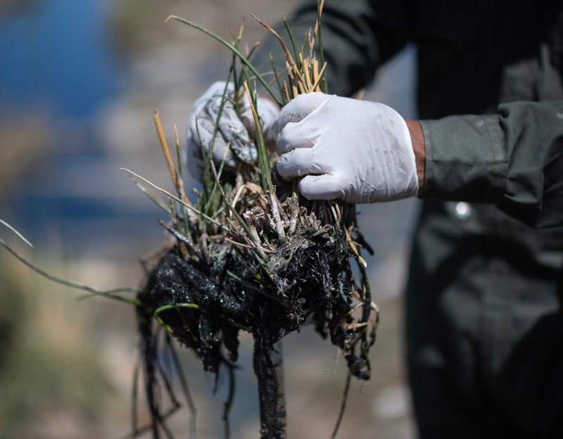 We plant the Totoras every 6 months and we harvest them at that time too, when planted and harvested we extract the decontaminants the Totoras store on their leaves as part of the decontamination process.